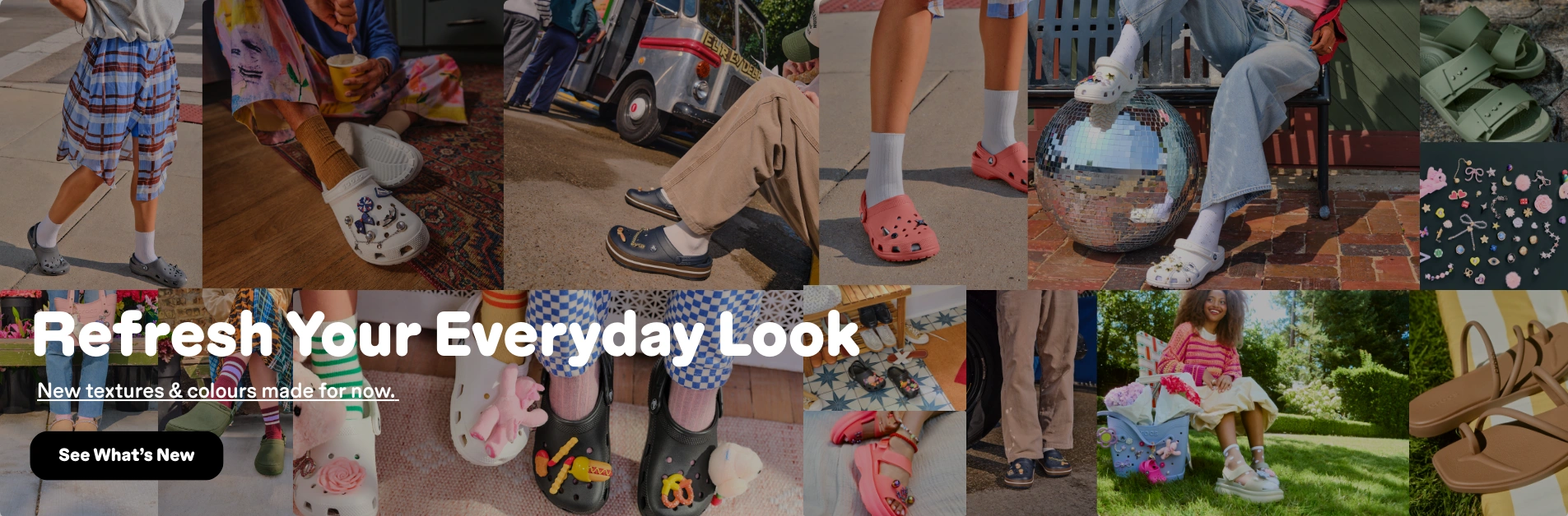 Classic Clog and SlidesAs our most popular and iconic shoe silhouettes, the Classic Clog and Slide come in a wide variety of colors and patterns, are easy to clean, and serve as the foundation of our exciting collaborations. Clogs also accommodate infinite amounts of personalization thanks to our ever-changing collection of Jibbitz™ shoe charms.
